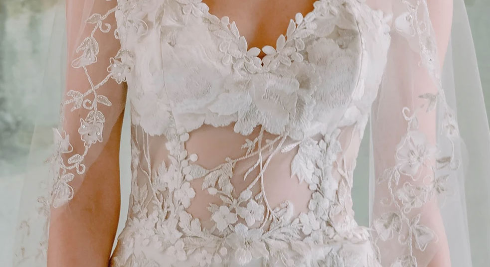 Laser lace is one of the more modern styles of lace which involves satin being cut with a laser and then embroidered onto different fabrics to provide an on-trend, striking design.